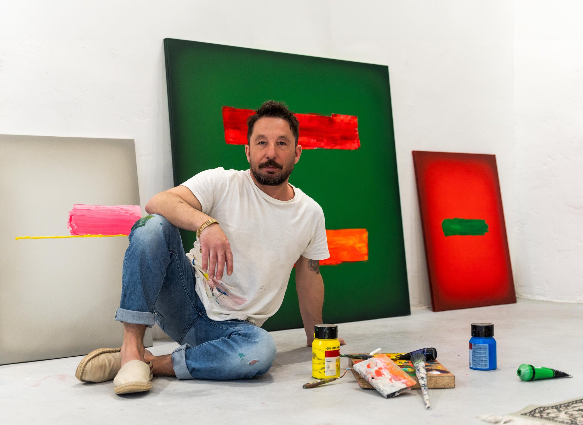 “I have a marked interest in color and the perception that can affect the viewer. Basically, I work on different supports, this opens up the possibility of expression for me. My field of work when I work on canvas consists of adding very diluted layers of paint in different shades, obtaining gradients in color. I am particularly interested in preserving the texture of the fabric itself in this process.”