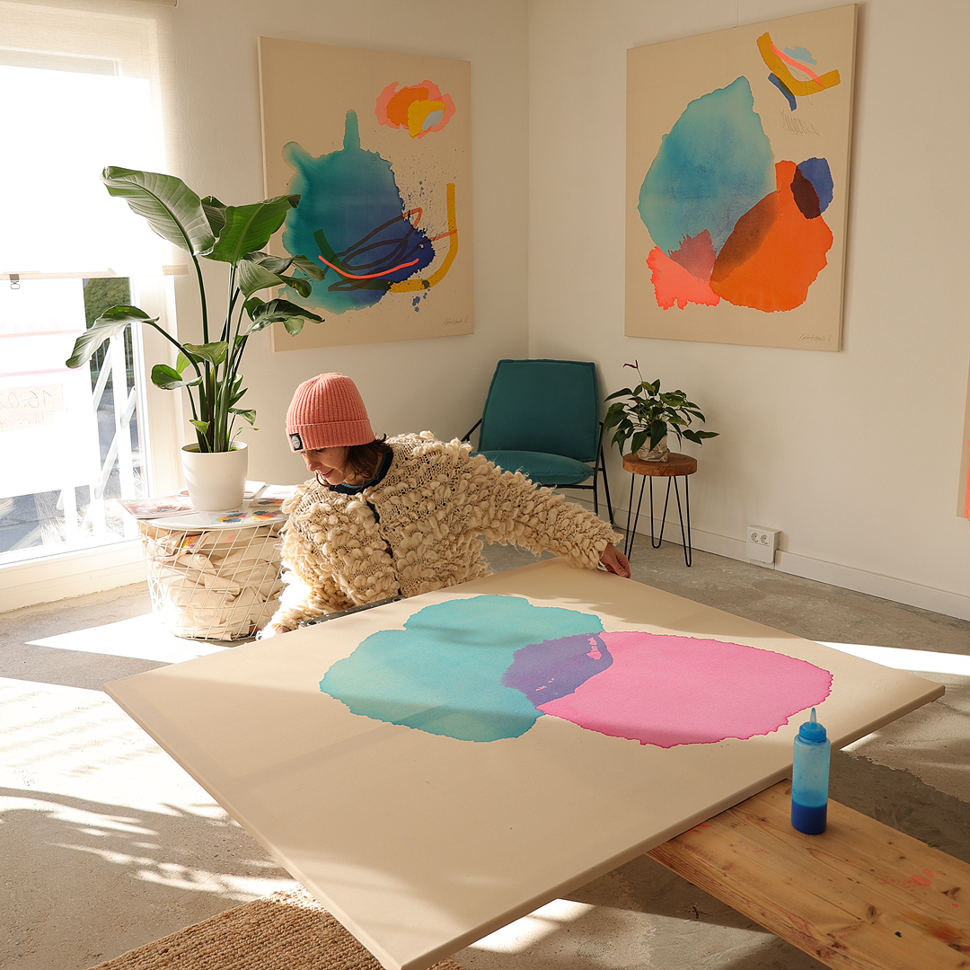 Anna Kalinitschenko is an abstract artist with a passion for vibrant colors and emotional expression. Her works emerge intuitively – guided by feeling, color, and the desire to awaken positive emotions in people. A distinctive feature of Anna’s style is her conscious use of space: she deliberately leaves parts of the canvas unpainted to create a sense of lightness, depth, and breathing room. Each piece invites viewers to connect – with colors, moods, and themselves. With her art, Anna seeks to shape living spaces that inspire, uplift, and serve as a joyful reminder of how colorful and beautiful life can be.