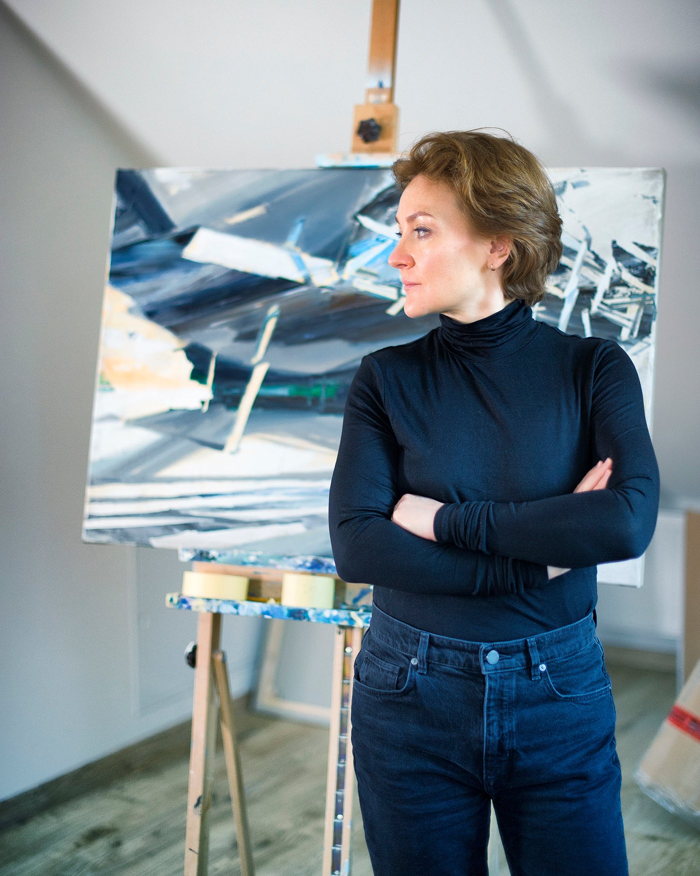 This exploration is not an exercise in metaphor but a direct engagement with the unity of structure and being. By employing oil and canvas as scalpel and sutures, Shulkin peels back the layers of architectural exteriors to expose their raw connection to the human form. The stark rigidity of concrete finds intimacy in the softness of flesh; the cold strength of steel resonates with the warmth of blood. Her work transforms the built environment into a living entity, challenging conventional perceptions of space as static and inert.
