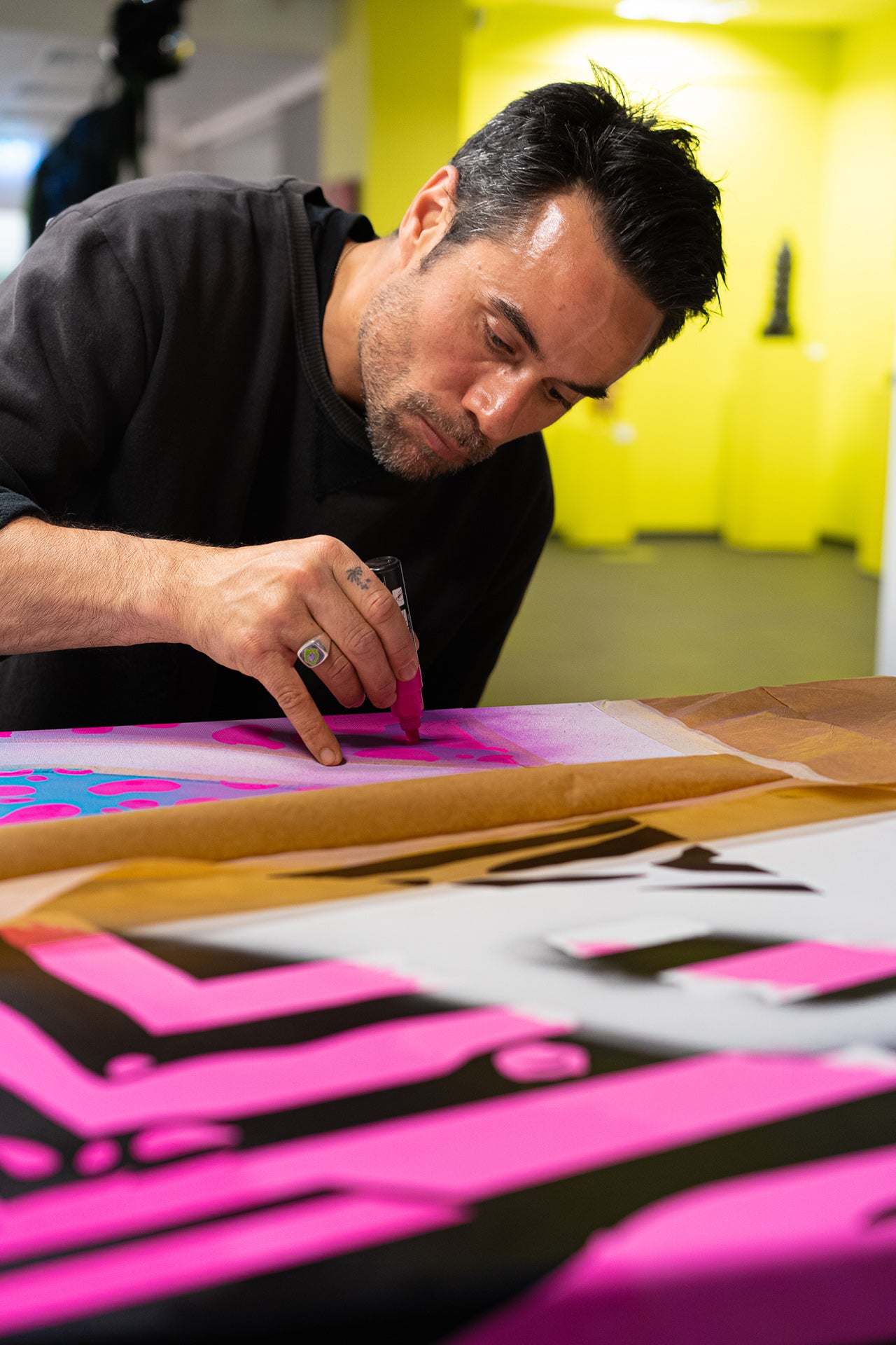 Javi Luque a.k.a. Hey Bonito is a mixed media artist driven by the joy of his inner child and the electric pulse of good vibes. His art isn’t about words; it’s about feeling. He believes colors are the language of emotions, and through vibrant palettes and bold patterns, He aims to spark a soulful connection that speaks directly to the heart.