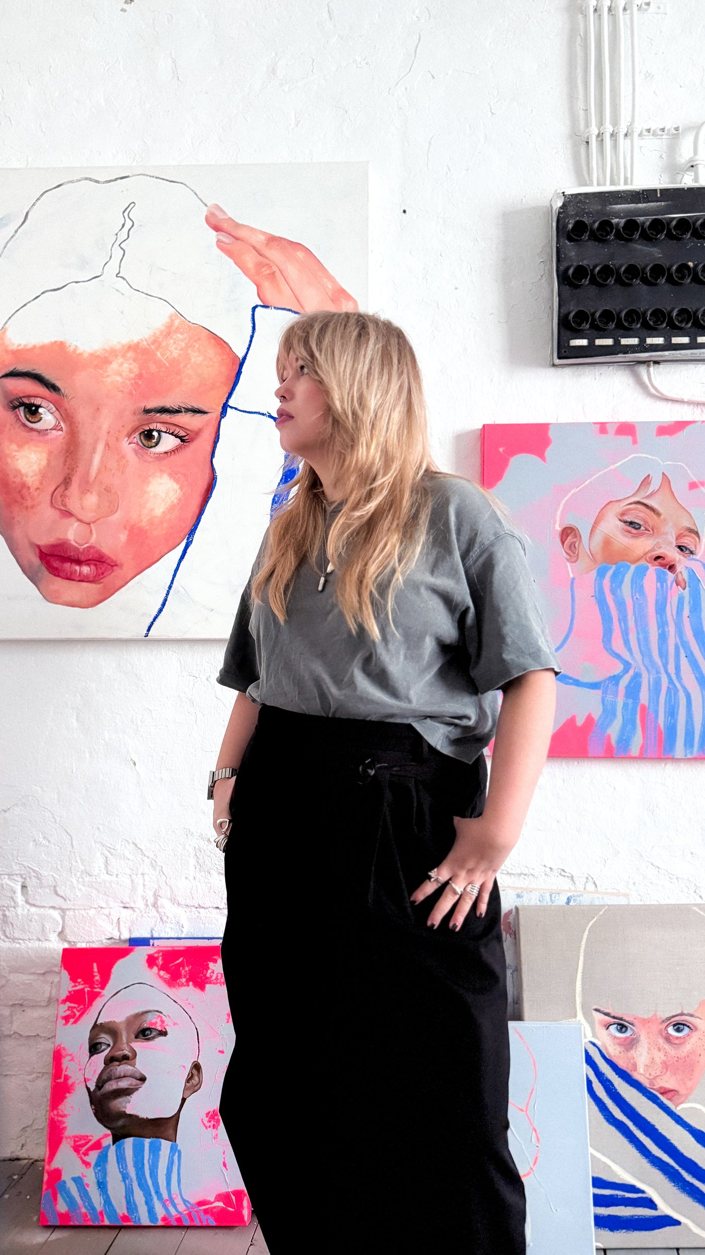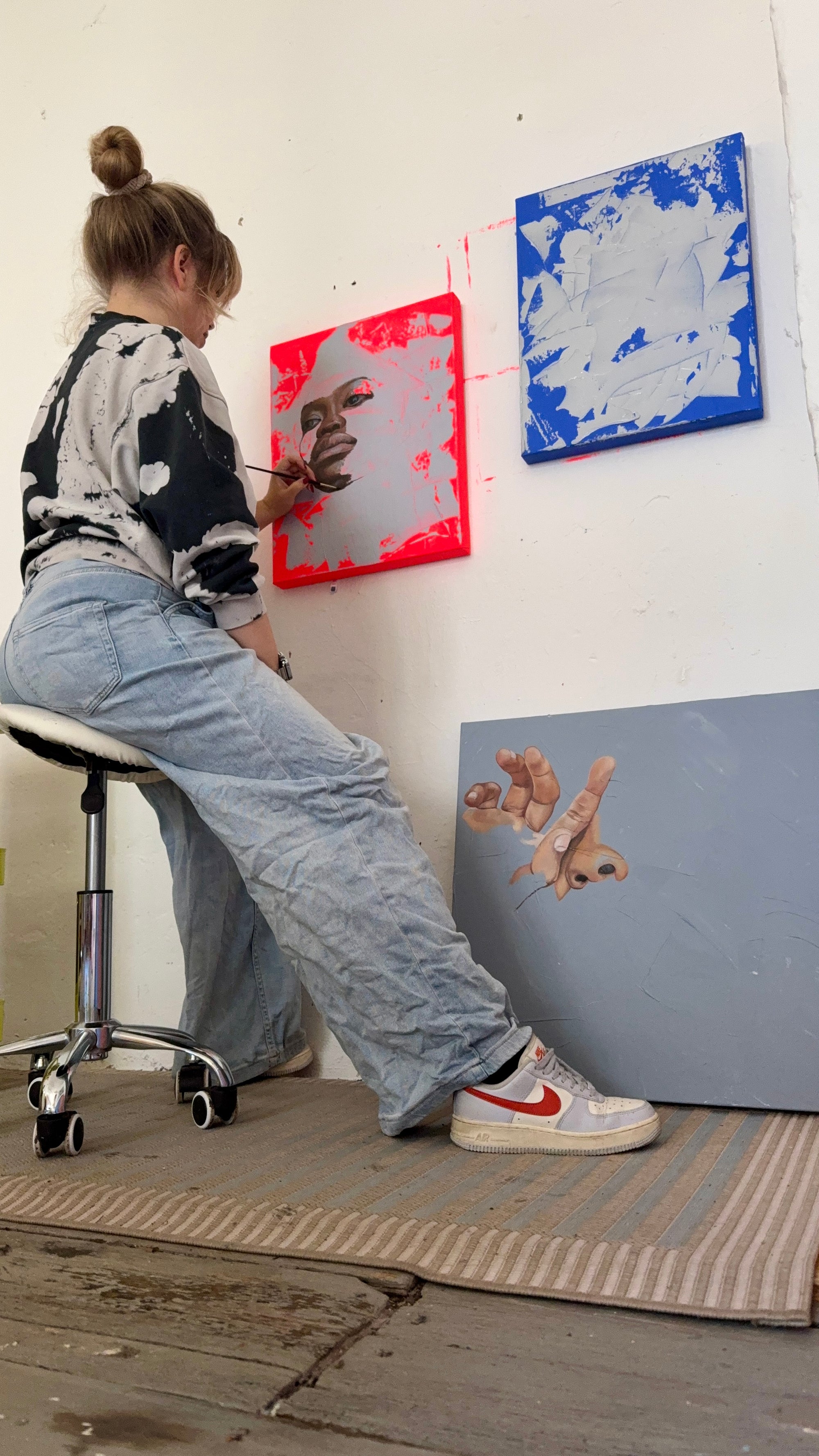 Jette Leder (b1983 in Dresden) is a self-taught artist, she is continuously drawn to the intricate poetry found in the mundane, the everyday gestures that compose the symphony of human existence. Her artistic journey is an exploration of human expression, delving deep into its nuances and subtleties. She strives to capture the essence of humanity by zooming into the minutiae, pushing the boundaries of proximity until it evokes a visceral response from the viewer—a blend of discomfort and fascination.