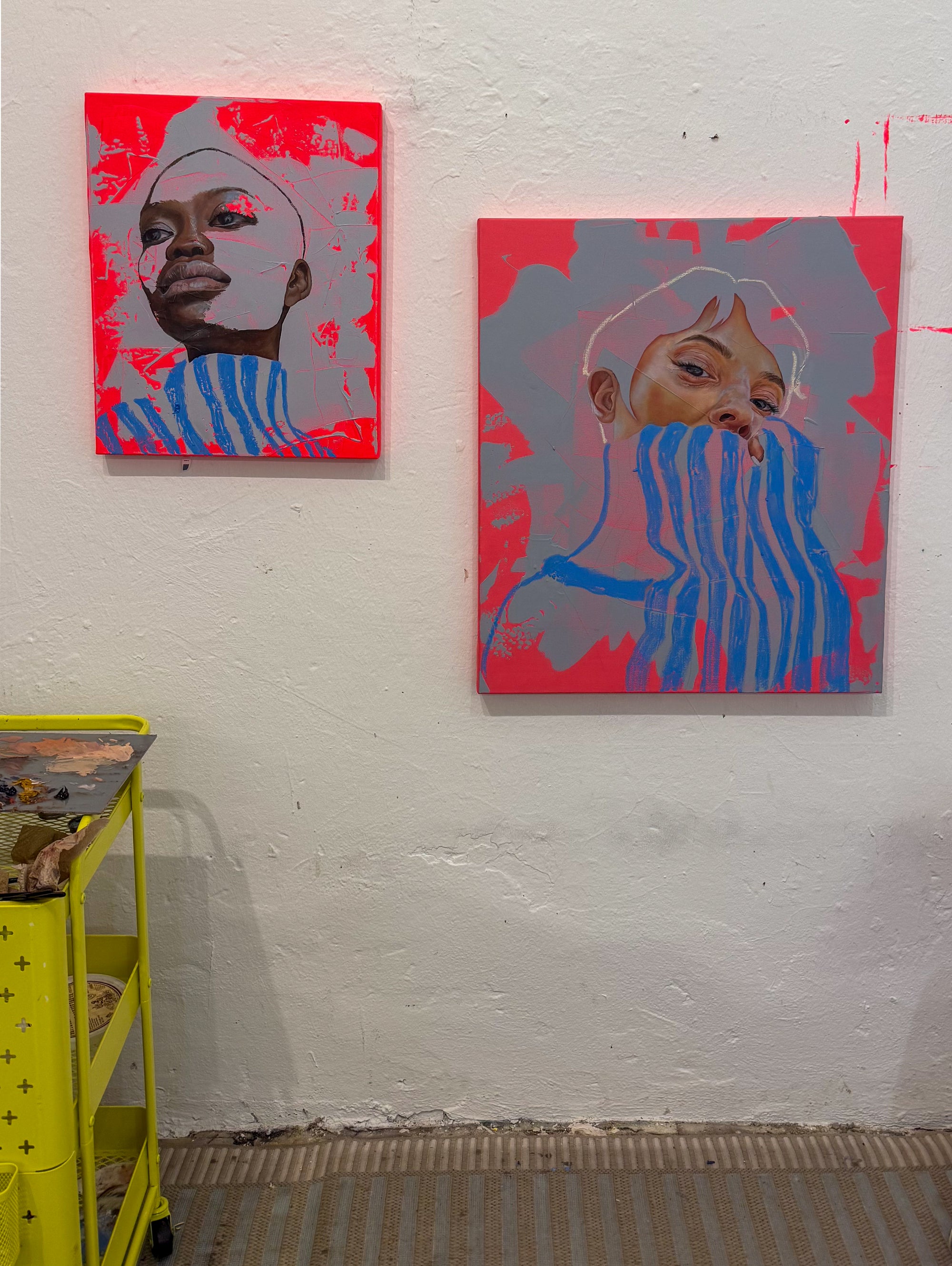 Drawing inspiration from the works of Lucien Freud, Egon Schiele, and Jenny Saville, she employs traditional painting techniques to carve out a space for self-discovery and reflection. Her palette is imbued with expressionistic colors, each hue echoing the complexities of the human psyche. Through the interplay of light and shadow, form and texture, she aims to capture the raw essence of existence, stripping away the veneer of societal constructs to reveal the raw beauty beneath.
