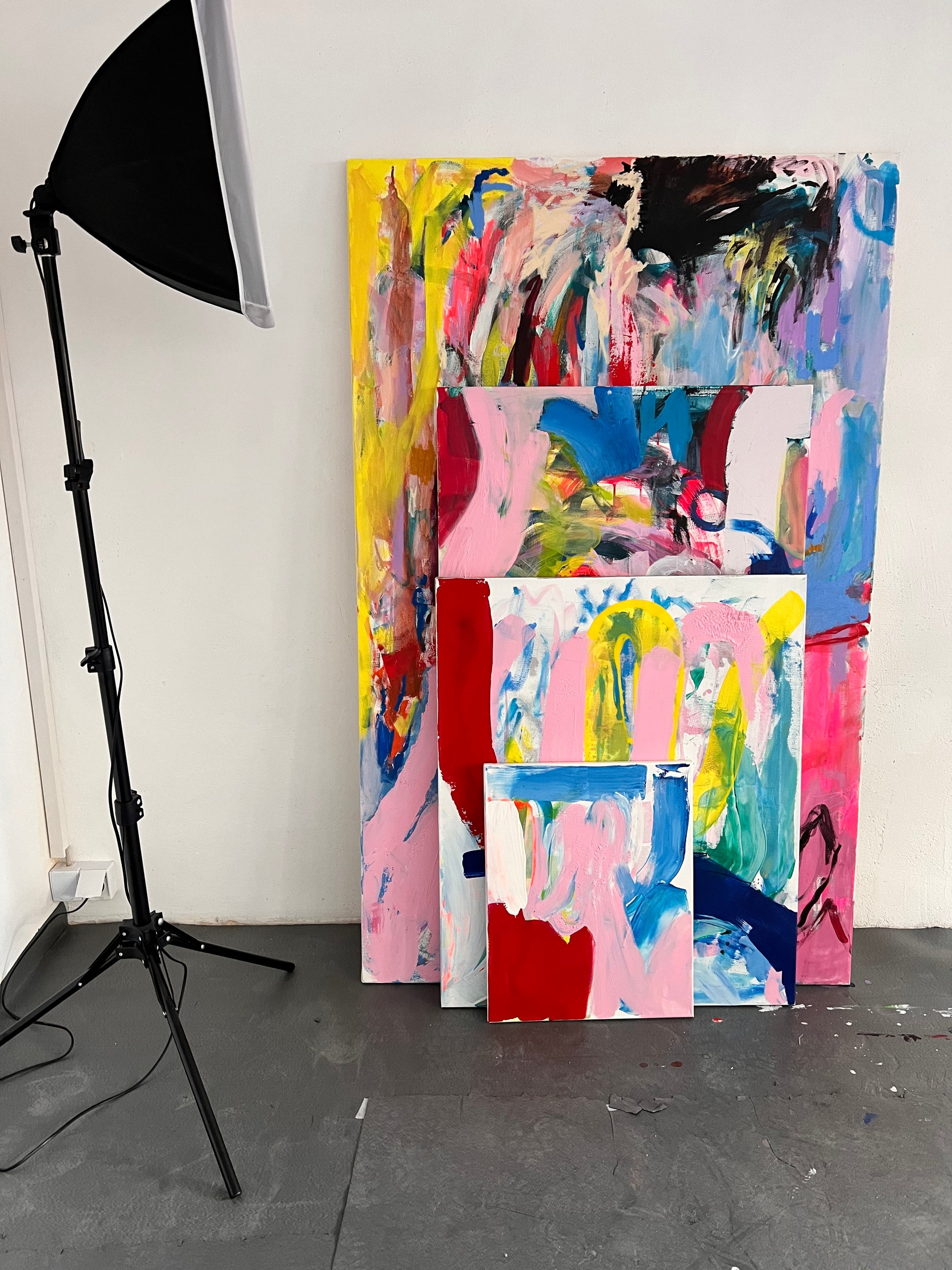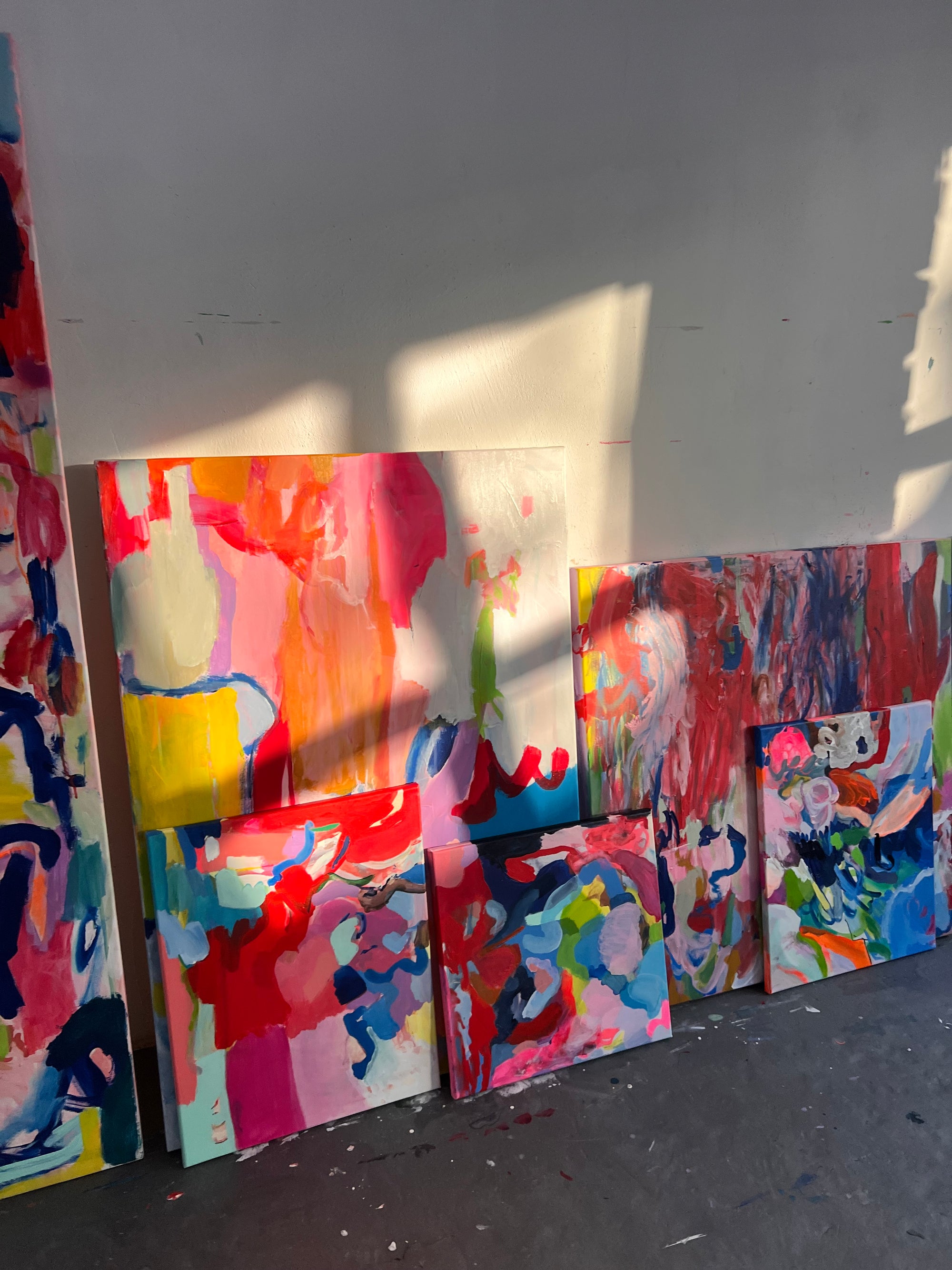Nadine Kupfer is a German artist who paints intuitively and is guided by her emotions and good music. Her art arises from the moment, from the pure joy of creating and the irrepressible curiosity about what colors and shapes can tell. The colors bubble out of her, are alive, untamed, and each work tells a story of her inner soul journey.
