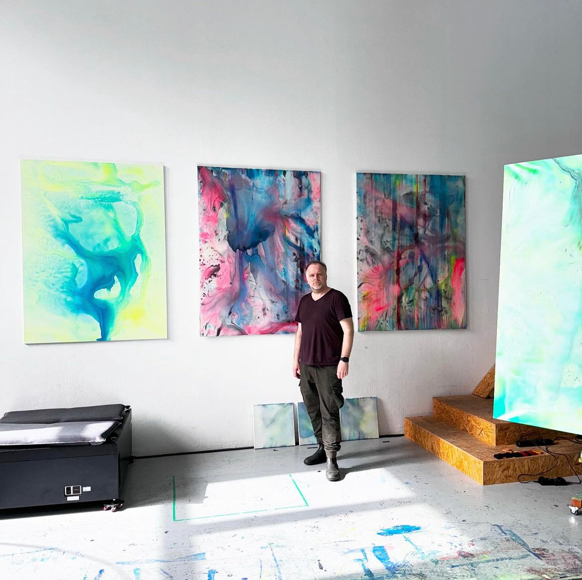 “I work internationally as an artist with the media projection mapping, painting, photography and print. Since 1996, I have been showing my work worldwide in the form of light art installations in public space, in exhibitions and at live audio visual projects with various musicians. I would describe myself as a painter who works with different media analogue and digital. In my pictures, I try to incorporate and pick up colour structures, colour rhythms, movements, dynamics. Colour, gradients, shades fascinate me and always arouse the curiosity to develop new image compositions digitally and/or analogue.”