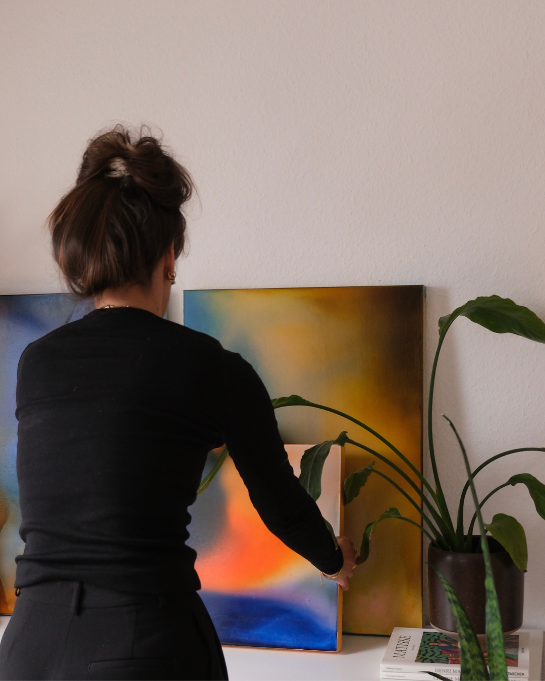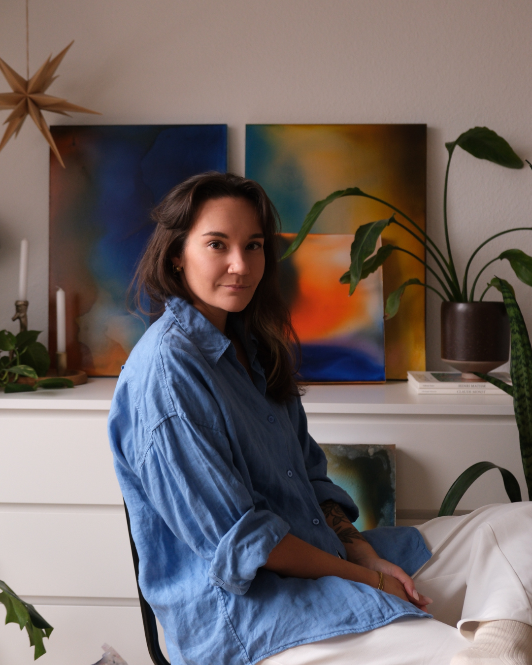 Ronja Radau is an abstract artist, living in northern Germany. Her work is deeply influenced by the liquid characteristics of the materials she uses, such as liquid acrylic paint and watercolour, which allow her to capture the ephemeral nature of feelings and enable each piece to evolve organically. Her art is a reflection of the inner world, where colours, textures, and materials blend to evoke a sense of depth and emotion. By embracing the unpredictability of these mediums, she invites viewers to immerse themselves in the dynamic dance of colour and light, exploring the intricate balance between the conscious and the subconscious. Each artwork is a testament to the ever-changing landscape of human experience, inviting all who engage with it to explore their own emotional resonance.