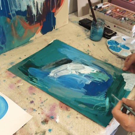 Through an abstract perspective, she incorporates memories and impressions from her personal life into her paintings. Her eyes are always looking for harmony, beauty, and unique compositions. She fell in love with acrylics due to its unpredictable ability to blend with other mediums on raw canvas. Her daily practice allows her to process experiences and emotions and to calm her busy mind. Mixing colors and performing intuitive movements on raw canvas are her form of meditation and making sense of life.