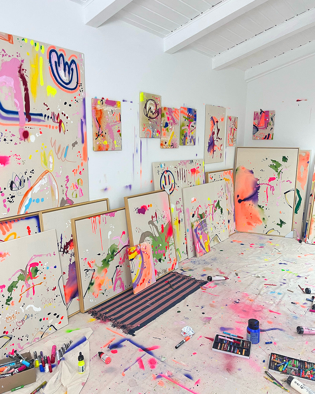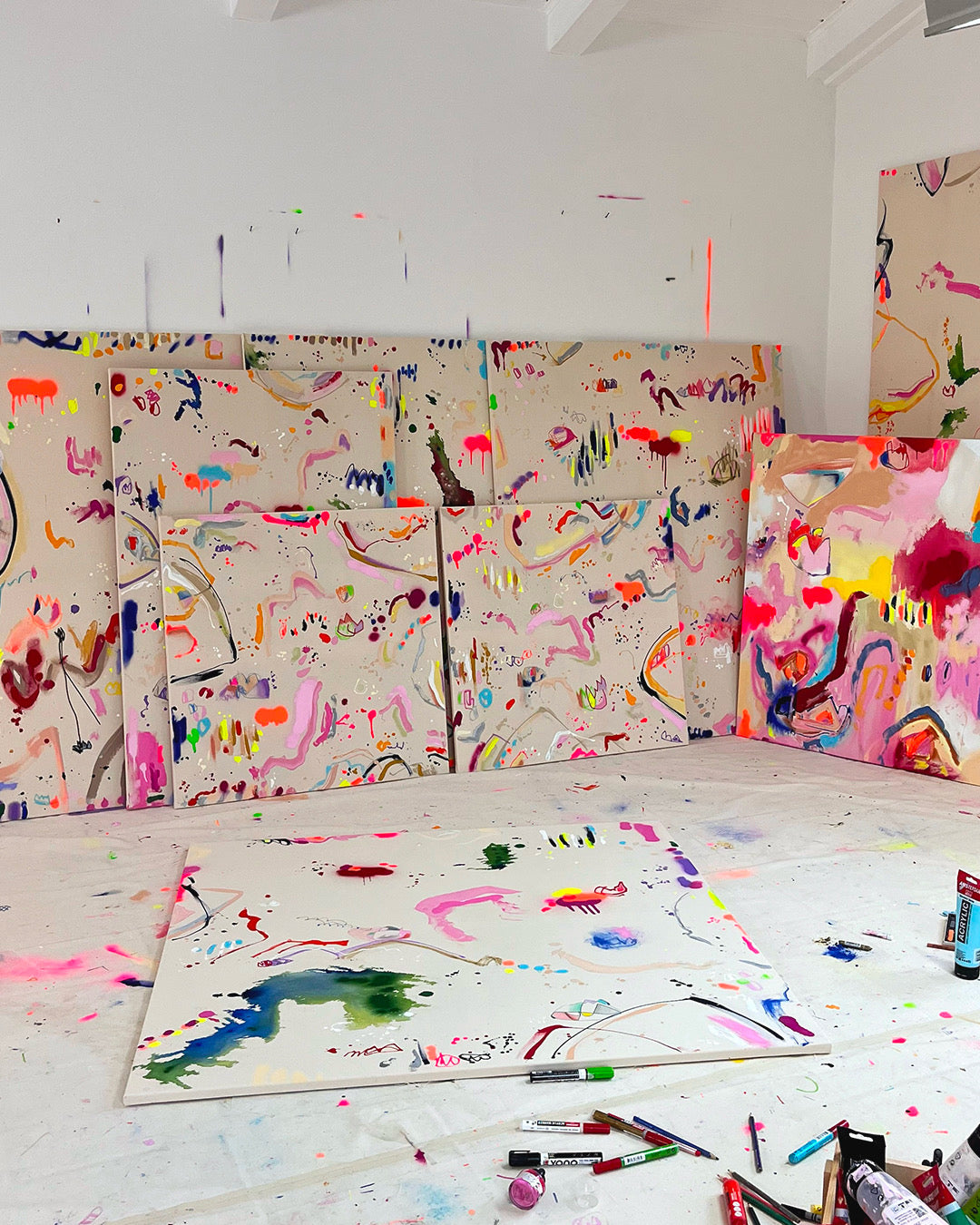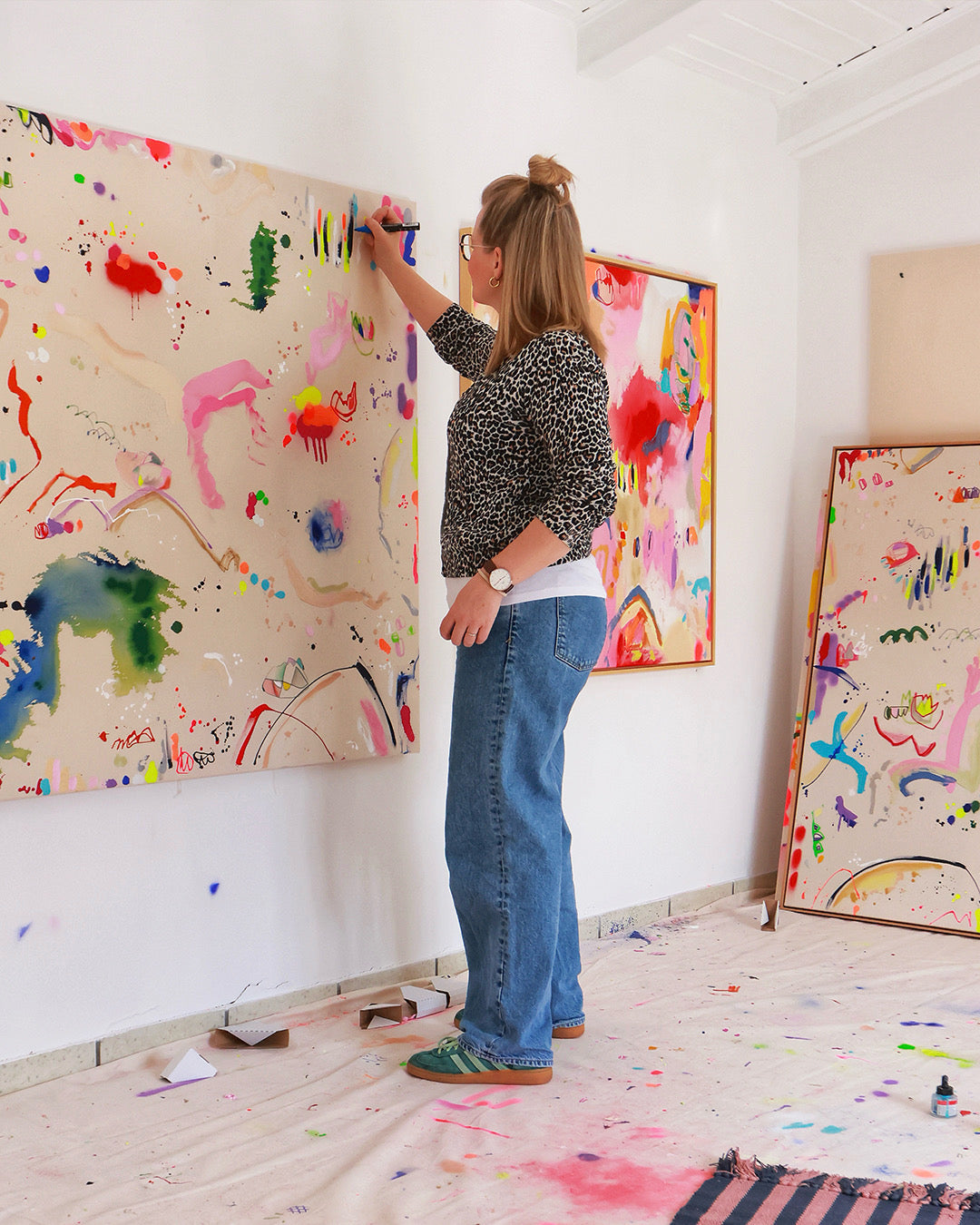 Vera Klaus is a German artist whose paintings combine a lot of positive energy, cheerful emotions and colourful creativity. Music is a must when creating her works and she wants to transfer the happiness she feels when painting directly to the viewer through her works. To create she uses various materials such as spray and acrylic paints as well as chalk.
