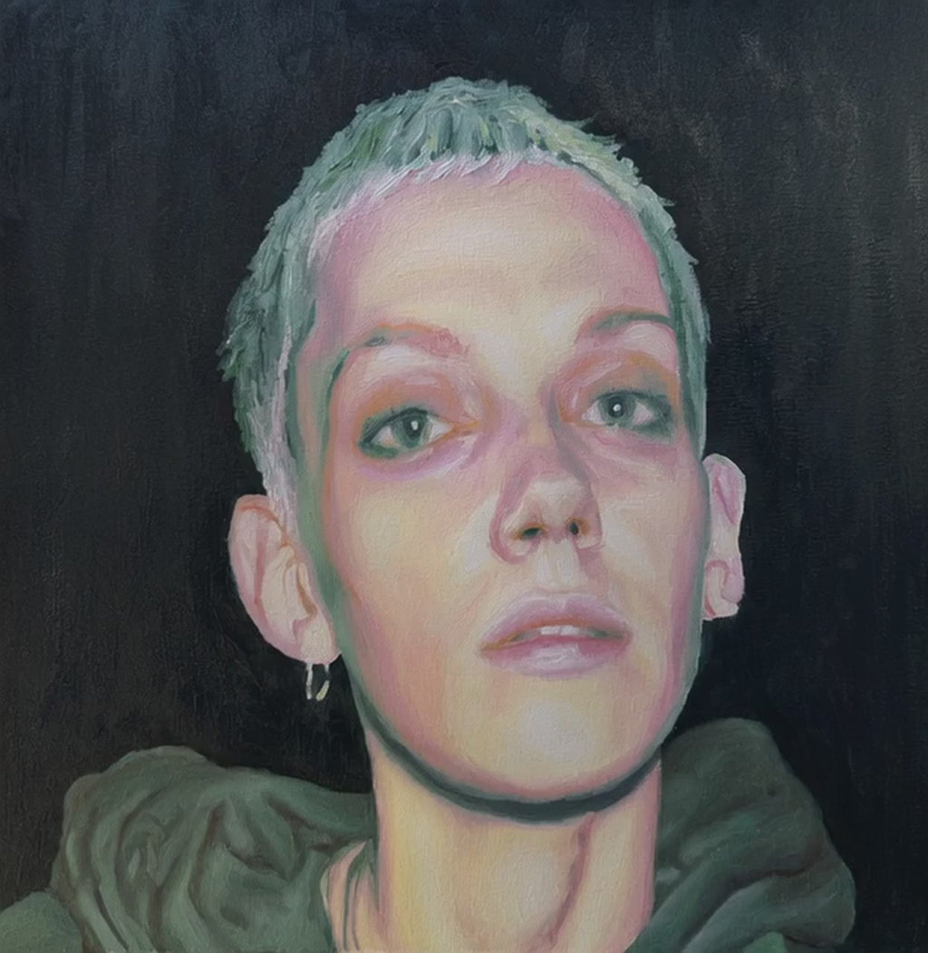 Friederike Meier (born 1992) is a German painter based in Berlin. She combines artificialintelligence with traditional painting to challenge perceptions of femininity. Using AI, she creates photorealistic portraits of women that question beauty ideals andgender norms. Her figures are complex—fragile yet strong—and exist beyond binarycategories. Each is captured in a charged moment: something has happened, a word wasspoken, a glance exchanged. Their emotions—anger, sadness, determination—overlap in asingle “snapshot” created with AI.