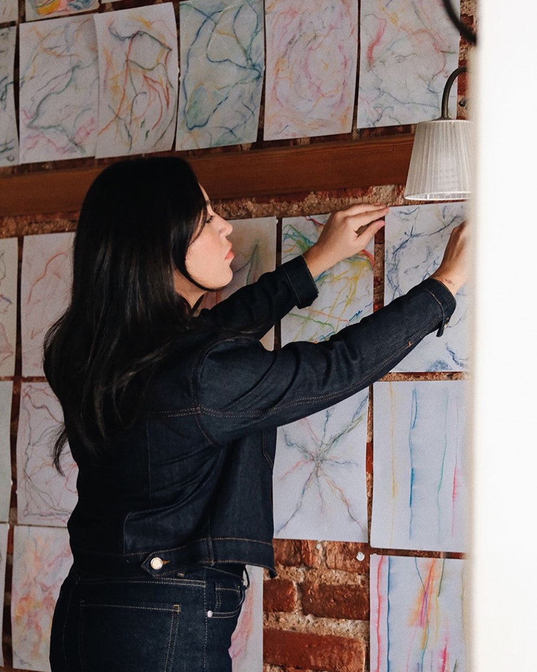"My concentric, contrasting and often cylindrical compositions include repetitive geometric shapes and solid textures that offer a glimpse into my painting process. Primitive, childlike forms continuously merge and split in complementary canvases, sparking a dialogue between time and notion. The multi-layered character of my technique contemplates my love of multi-piece canvases, giving the viewer a sense of distorted centralization while interacting with the works."