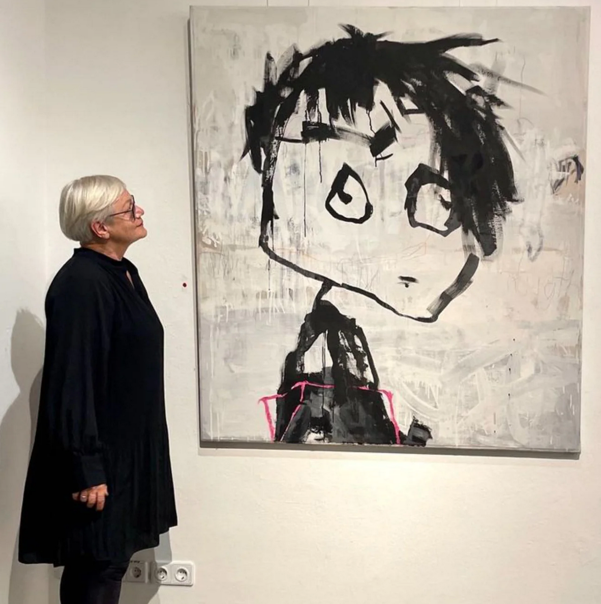 "Ungewöhnliche Begegnung" Painting, acrylic and graphit on mdf, 2020, signed by the artist